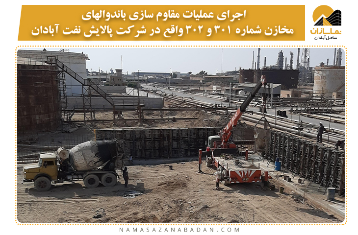 اجرای عملیات مقاوم سازی باندوالهای مخازن شماره 301 و 302 واقع در شرکت پالایش نفت آبادان