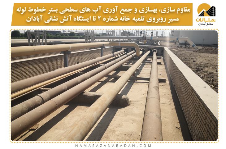 مقاوم سازی، بهسازی و جمع آوری آب های سطحی بستر خطوط لوله مسیر روبروی تلمبه خانه شماره 2 تا ایستگاه آتش نشانی آبادان